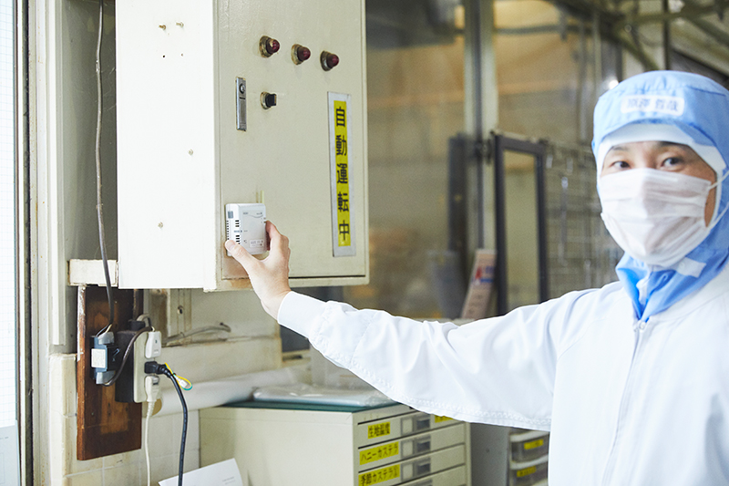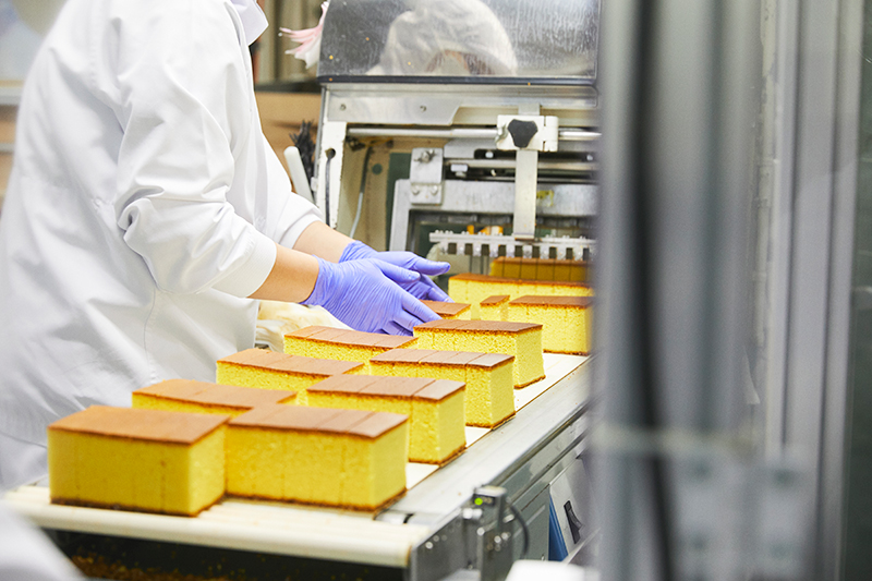 原澤氏 カステラの種類により大きさが変わるのであくまで目安になりますが、浦和工場では閑散期で1日に2500本ほど、繁忙期の9月や12月になると倍の5000本ほどのカステラを製造していて、製造スタッフも総勢で120名ほどおります。工場内の場所によって室温が違うので、BEMSの設定温度も柔軟に変更しています。例えば必然的に暑くなるオーブン付近は、他エリアと比べて2〜4度設定温度を下げています。