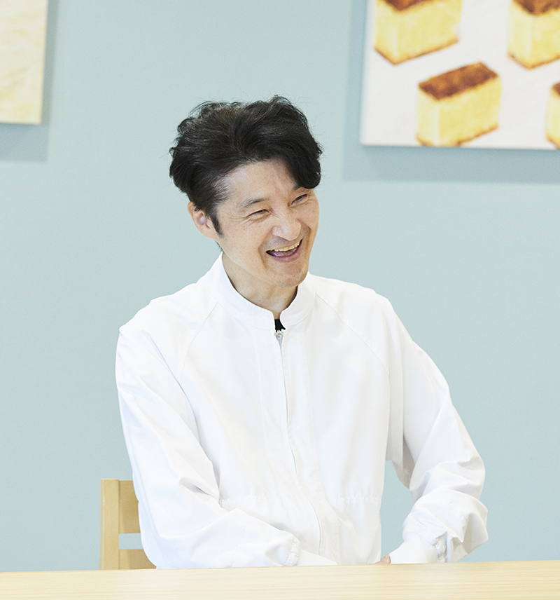浦和工場長 原澤哲哉様文明堂東京で働き始めて20年。単身赴任をしながら、日々カステラと向き合う仕事一筋な工場長。奥様と二人の娘さんと過ごす休日がそのエネルギーに。