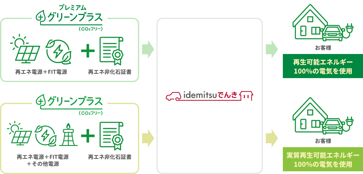 再生可能エネルギー(FIT電気含む)由来の電気に再生可能エネルギー指定非化石証書を組み合わせることで、CO₂フリーの再生可能エネルギー100%電気をご使用できるプランです。