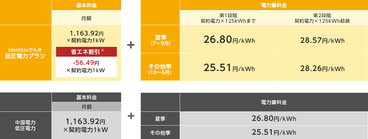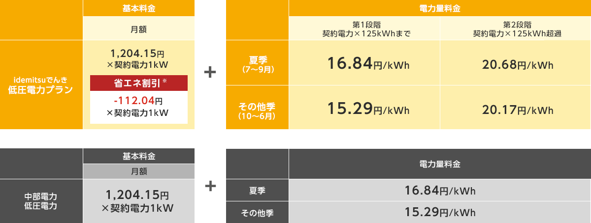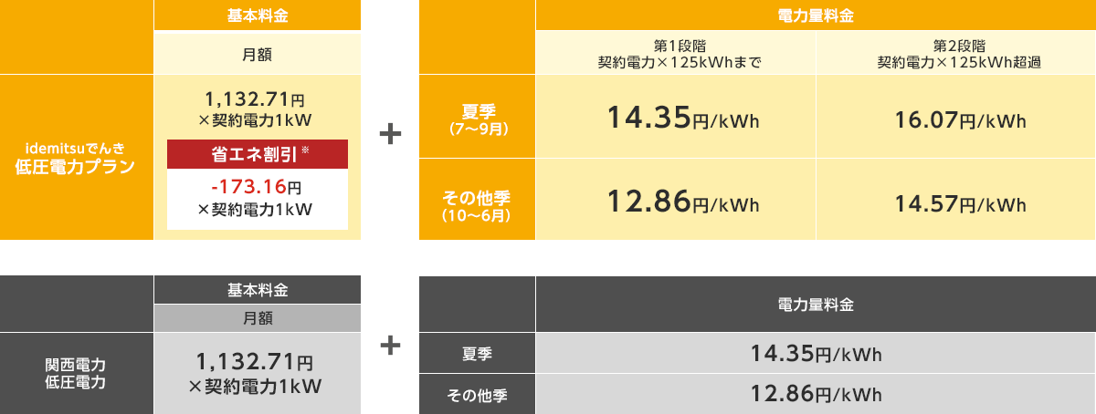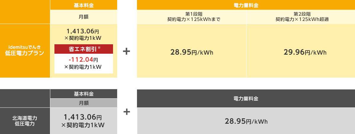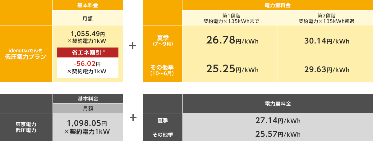 idemitsuでんき 低圧電力プランの料金(東京電力エリア)